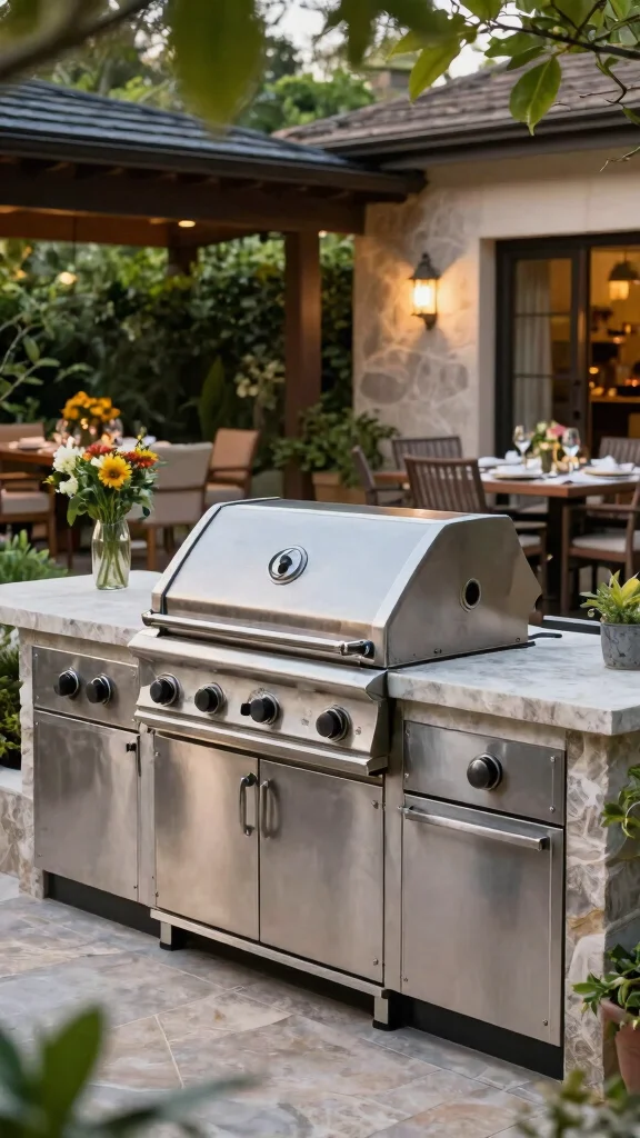 – What materials are best for an outdoor kitchen? Use stainless steel and stone for durability.