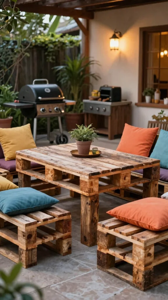 Want to add rustic charm to your patio without breaking the bank? Repurposing old pallets into outdoor furniture is a clever and budget-friendly solution. You can easily create tables, benches, or even a unique grill station with minimal effort. Add cushions for comfort and customize colors to suit your style. This DIY project not only saves money but also personalizes your outdoor cooking space!