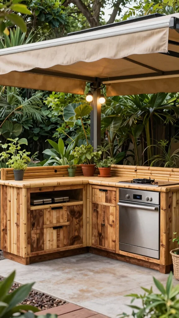 Opt for solar-powered lights to brighten your space and select eco-friendly coatings for durability. A retractable awning can provide much-needed shade during hot days, allowing you to enjoy cooking in comfort, rain or shine.