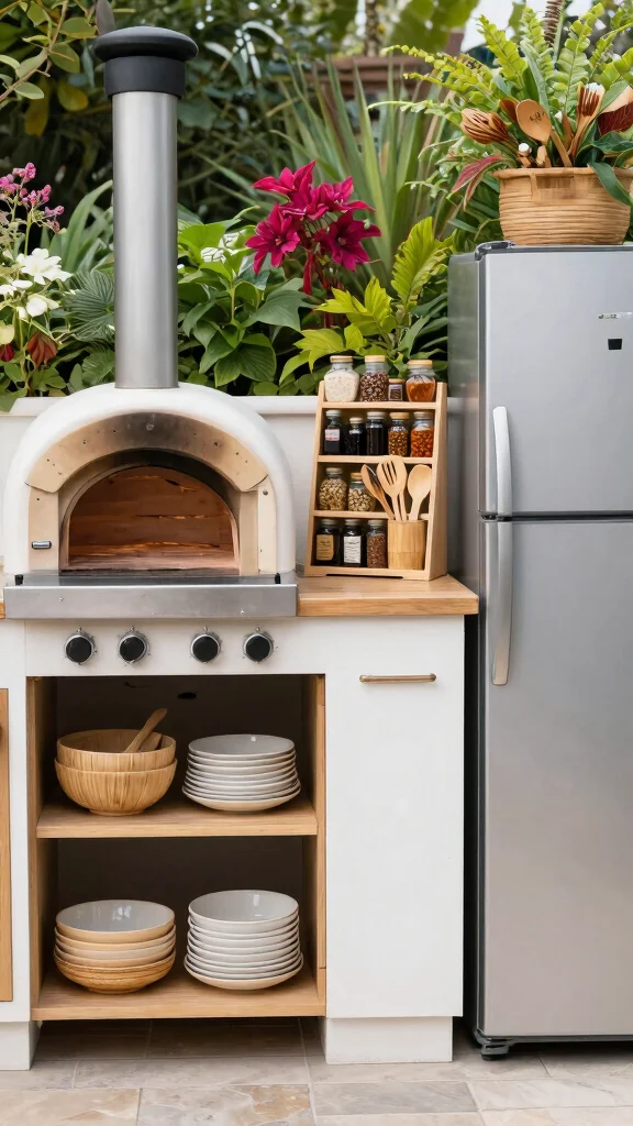 – How can I keep my outdoor kitchen organized? Use racks and storage bins to keep everything tidy.