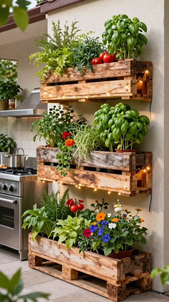 2. Install wall-mounted planters or stack recycled pallets.