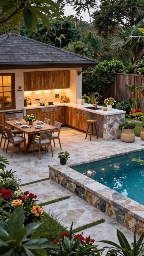 Creating a backyard kitchen and pool oasis is about merging style, functionality, and sustainability. The ideas explored here blend numerous design elements that can enhance your outdoor living experience. From eco-friendly materials to vibrant gardens and unique accessories, each idea contributes to a relaxing, functional space that brings joy to family and friends.
