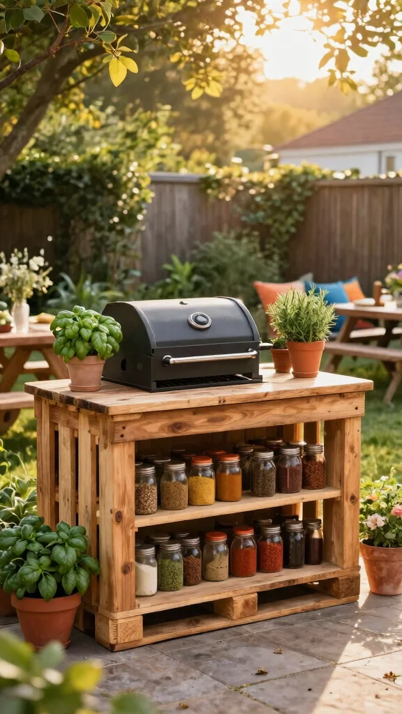 Imagine a cozy outdoor space that feels like home, created with recycled pallet wood. This approach is not only environmentally friendly but also easy on the wallet. Adding a grill station made from pallets can transform your backyard into a charming cooking haven.With shelves for spices and utensils and a sturdy countertop, you can enjoy effortless meal prep. A weather-resistant stain will enhance the wood’s natural beauty while protecting it from the elements.