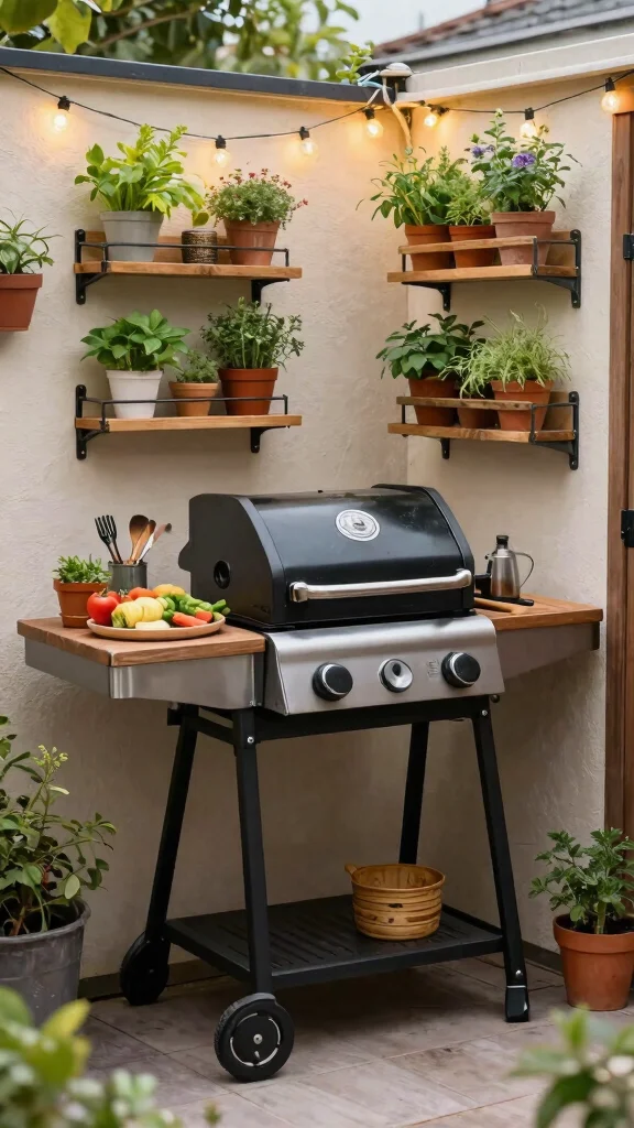 Even with limited space, a compact grill station can bring the joy of grilling to your backyard. Opt for a foldable or portable grill that you can easily store when not in use. Pair it with a small outdoor table for food prep and serving to maximize your area.Vertical garden shelves can add greenery while keeping your herbs and spices within reach, making the most of your space.