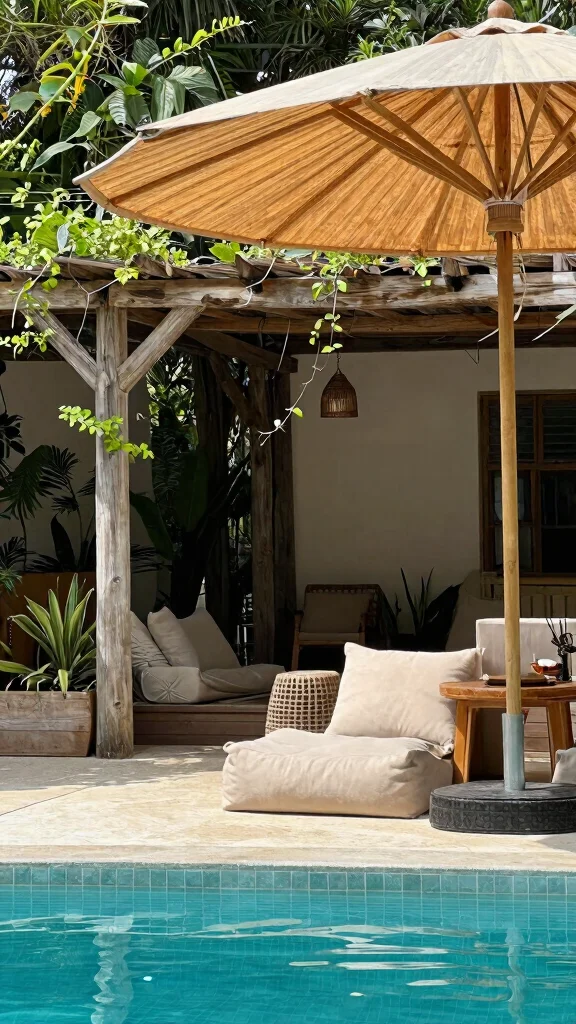 Fun fact: shade can reduce surface heat by up to 25%, making your backyard pool and patio ideas feel cooler without extra energy. Bamboo umbrellas and reclaimed wood pergolas aren’t just stylish—they slash glare and boost comfort.