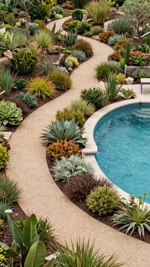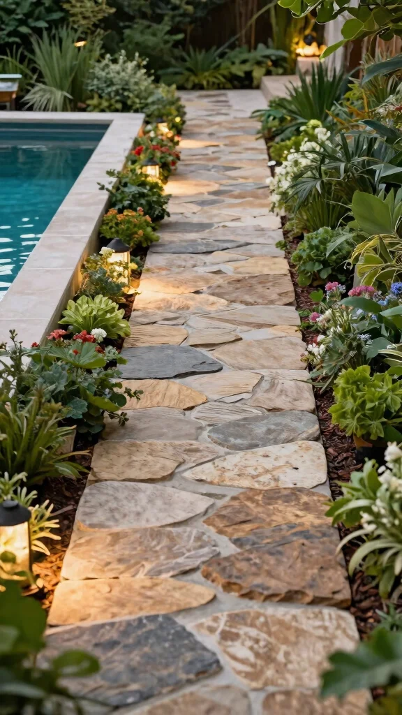 Create charming pathways leading to your pool that guide guests while enhancing your outdoor space. Use natural stones, recycled bricks, or gravel to form eco-friendly paths that blend beautifully with the surroundings. Low-growing plants along the edges can soften the look and add to the natural aesthetics of your oasis.