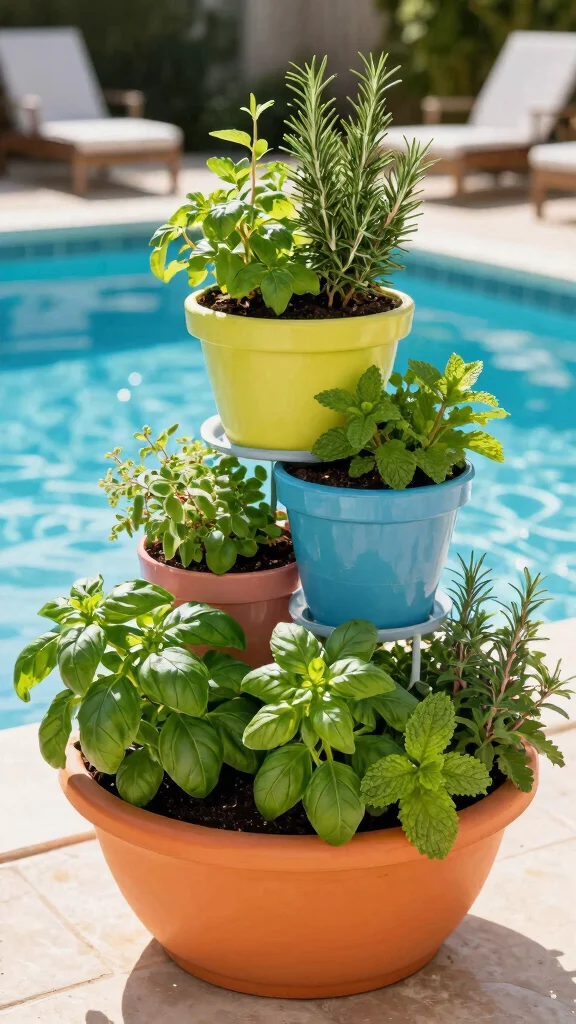 Imagine having fresh herbs at your fingertips while you relax by the pool! A poolside herb garden not only looks beautiful but also elevates your cooking experience. Consider using tiered planters or wall-mounted racks to maximize space and ease of access. Herbs like basil, rosemary, and mint thrive in sunny spots and can even help keep pests away.