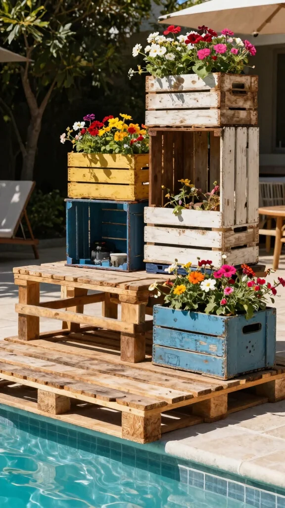 Transform discarded materials into unique features for your poolside design. Old wooden pallets can become stylish cocktail tables, while vintage crates serve as charming plant stands. By incorporating these creative pieces, you not only add character to your space but also tell a story of sustainability.