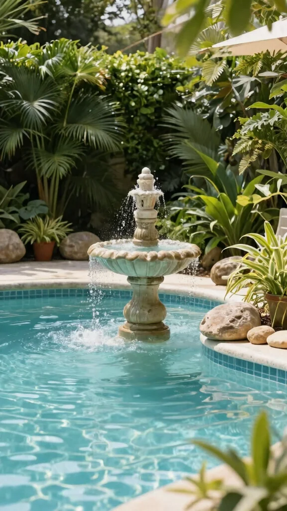 Enhance your pool area with soothing water features like small fountains or ponds. The gentle sound of flowing water adds tranquility to your space, making it feel more inviting while attracting wildlife. Choose features that complement your overall design and consider surrounding them with native plants for a cohesive look.