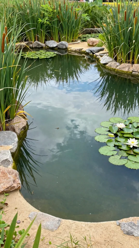 – Add water plants like bulrushes for beauty and natural filtration.