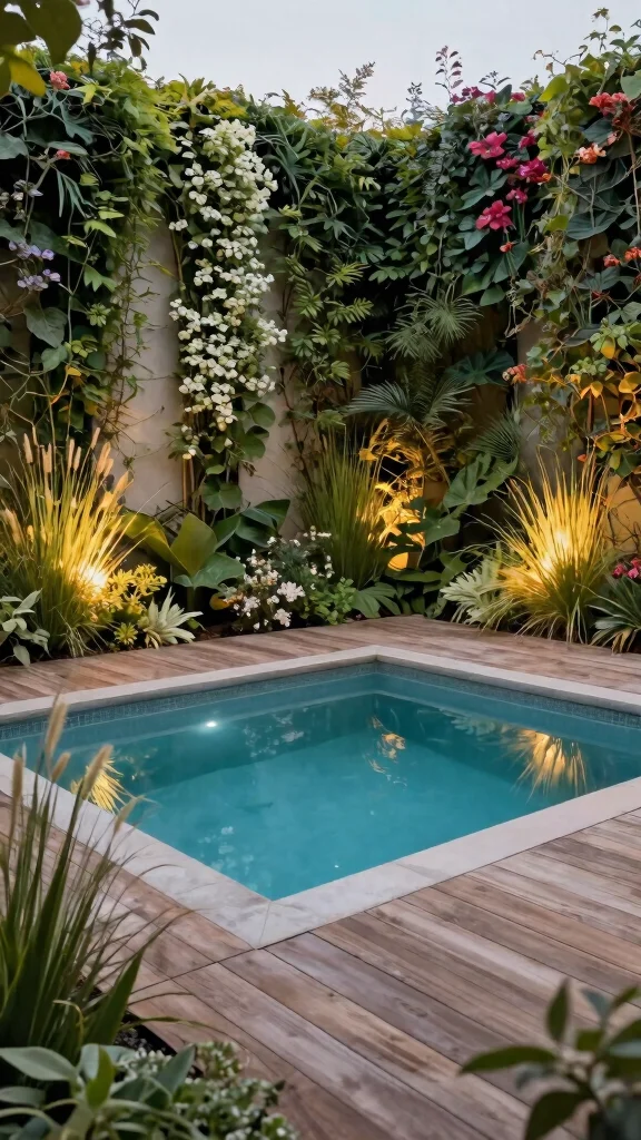 Add planters filled with low-maintenance grasses and succulents along the pool’s edges for a contemporary flair. This design not only looks stunning but also minimizes irrigation needs.