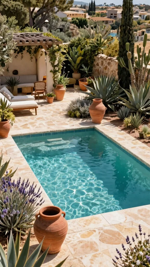 Option 4: Mediterranean-Style Pool with Xeriscaping