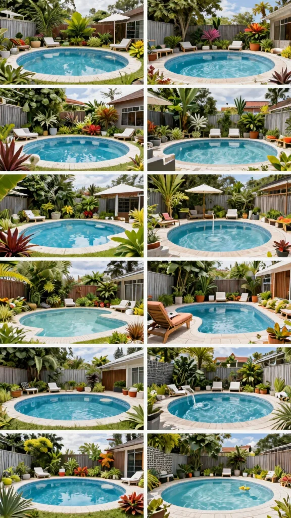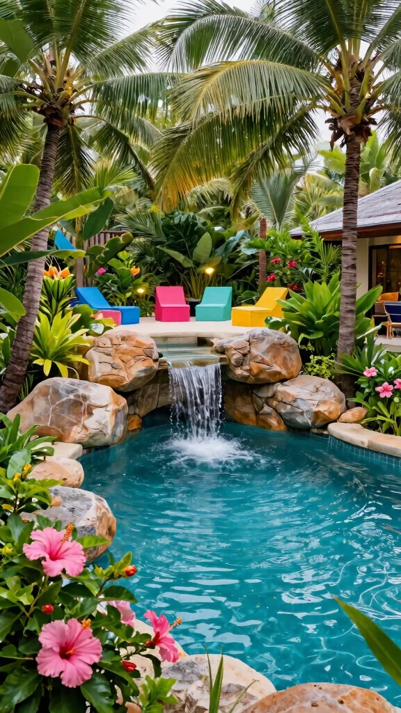 This design transforms your backyard into a tropical paradise, perfect for relaxation and enjoyment.