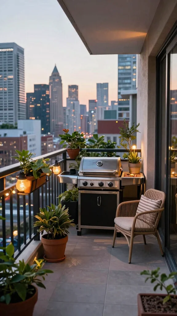 Living in an apartment doesn’t mean you have to skip grilling! A sleek urban balcony grill setup makes the most of your limited space with stylish, compact furniture and a small grill.
