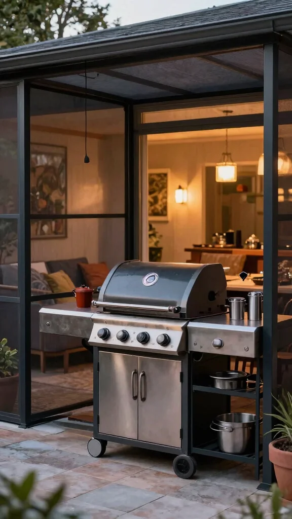 Adding an enclosure around your built-in grill enhances comfort and usability throughout the year. A screened patio or gazebo provides shelter from the elements, allowing you to grill regardless of the weather! This versatile space can also serve as a dining area, adding functionality to your home.