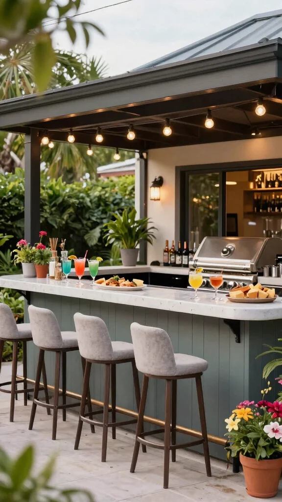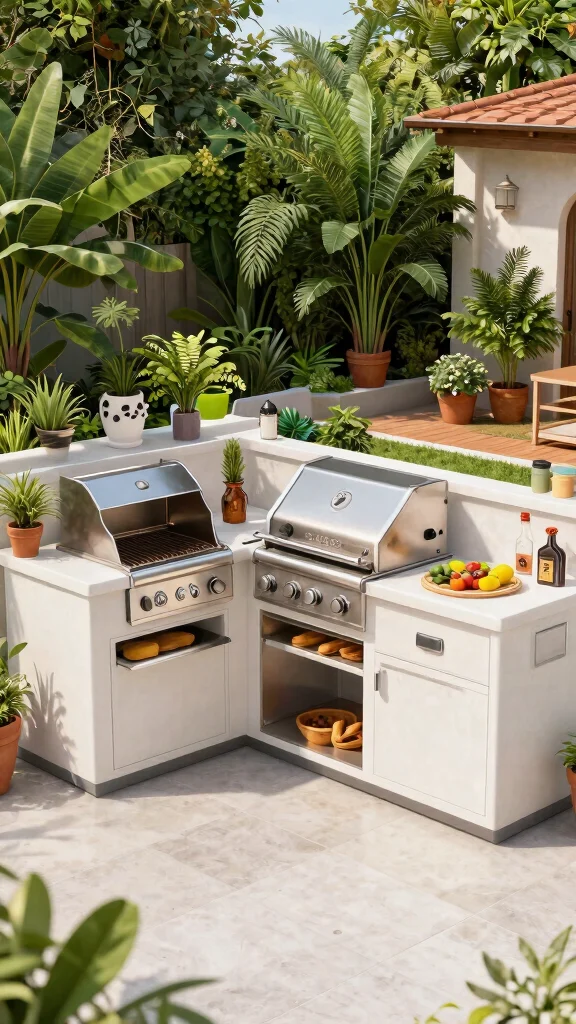To bring this vision to life, consider incorporating heat-resistant materials that can withstand the elements. Adding built-in storage for your grilling tools will keep everything organized. For extra convenience, think about including a mini fridge or a sink to make serving easier.