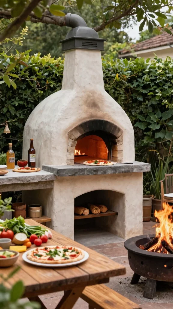 To make this work, design a dedicated area for pizza preparation near the oven for a smooth workflow. Opt for brick or stone materials that enhance the rustic vibe while ensuring durability. The delightful smoky flavor from the wood will elevate your meals, adding an unforgettable touch.