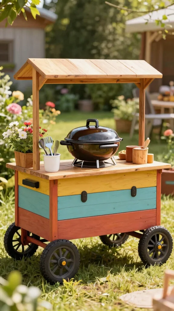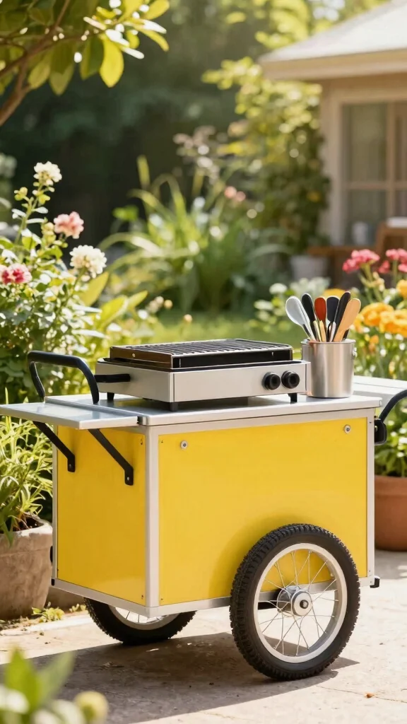 A simple mobile cooking cart transforms your outdoor cooking area into a versatile space that’s enjoyable to use.