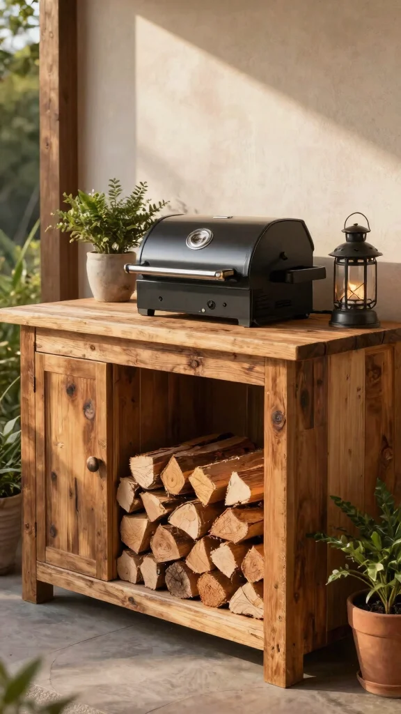 Incorporating firewood storage into your grill station adds both functionality and charm. Build a simple grill station that includes a space for neatly stacking firewood alongside your grill, creating a rustic aesthetic. This design not only looks appealing but also keeps your cooking area organized.