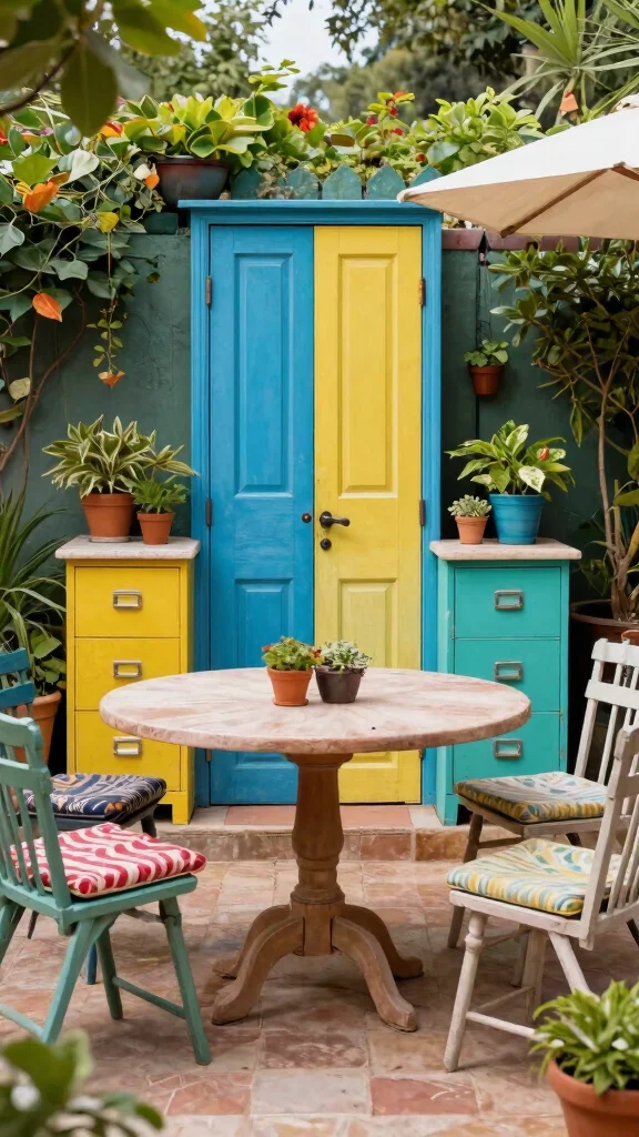 Elevate the door by attaching it to sturdy legs or even using old file cabinets for support. Add some comfy outdoor cushions for seating, and you have a beautiful gathering spot. It’s a conversation starter for sure!