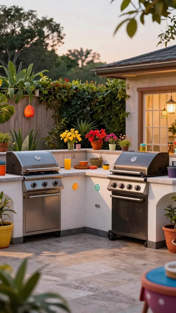 Brighten up your outdoor kitchen with a colorful cooking canopy! This fun addition helps define your cooking area while providing shade and style. You can create a canopy using vibrant fabric or repurpose an old beach umbrella.
