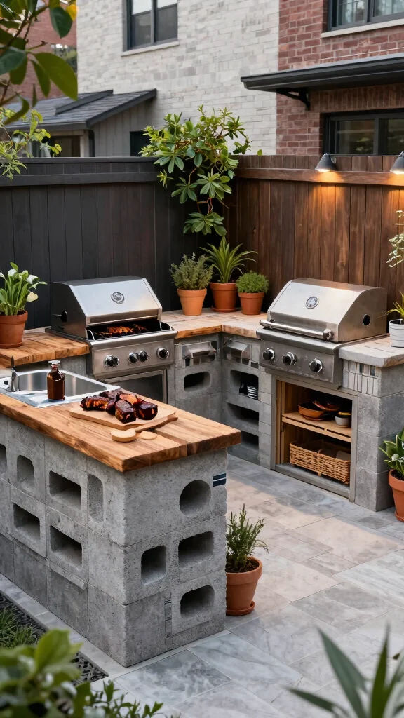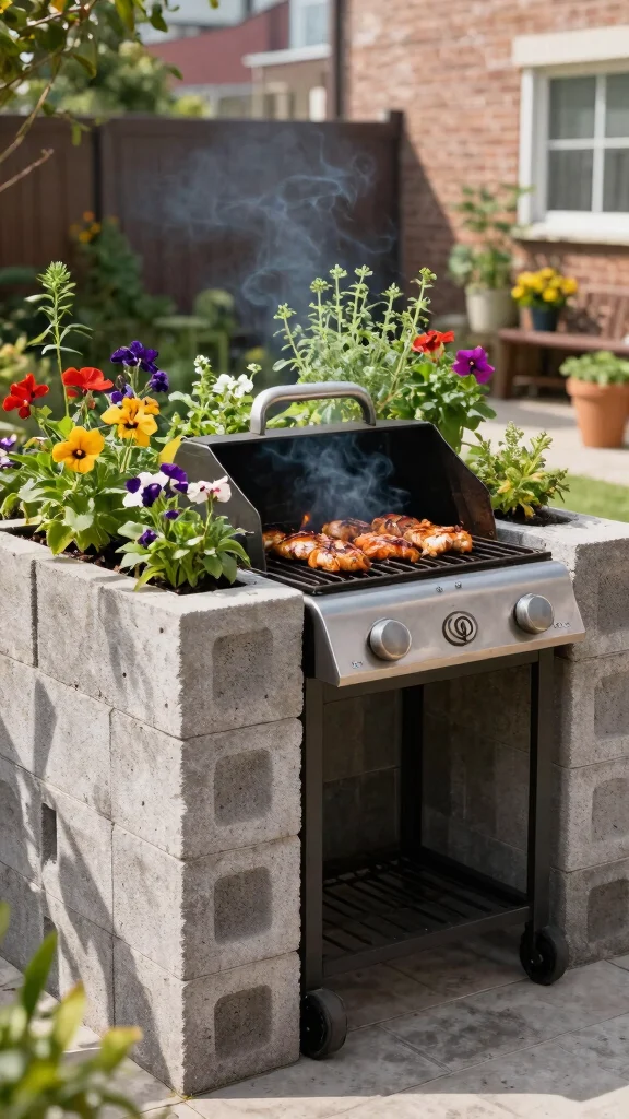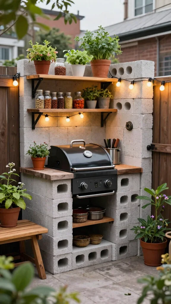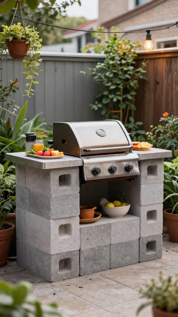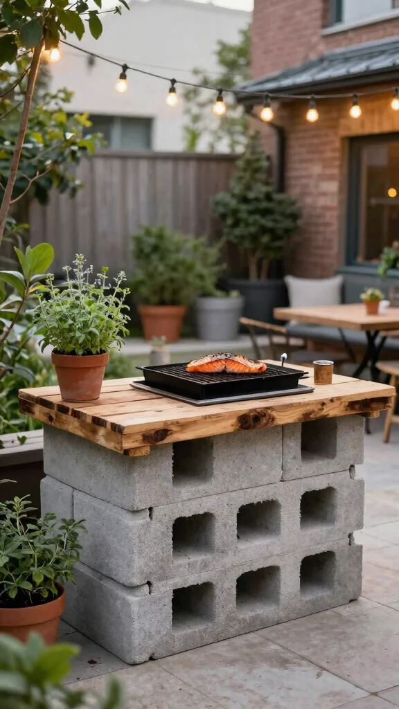 Fun fact: A cinder block grill station in a U-shape boosts prep space by up to 40%, turning tight balconies into mini outdoor kitchens. Build with a sturdy surface and keep everything within arm’s reach, so grilling and serving stay seamless.