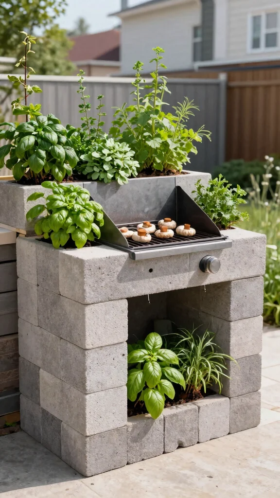 Use cinder blocks to build a vertical garden alongside your grill for fresh herbs and veggies.