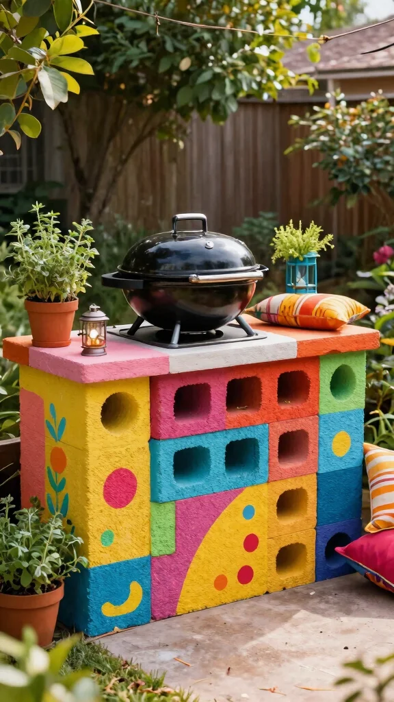 Stack your cinder blocks in a rectangular formation, leaving open spaces for your grilling tools and essentials. A neutral paint color can add a chic touch, and you can complement the area with tasteful outdoor furniture or vibrant potted plants to add a hint of greenery.