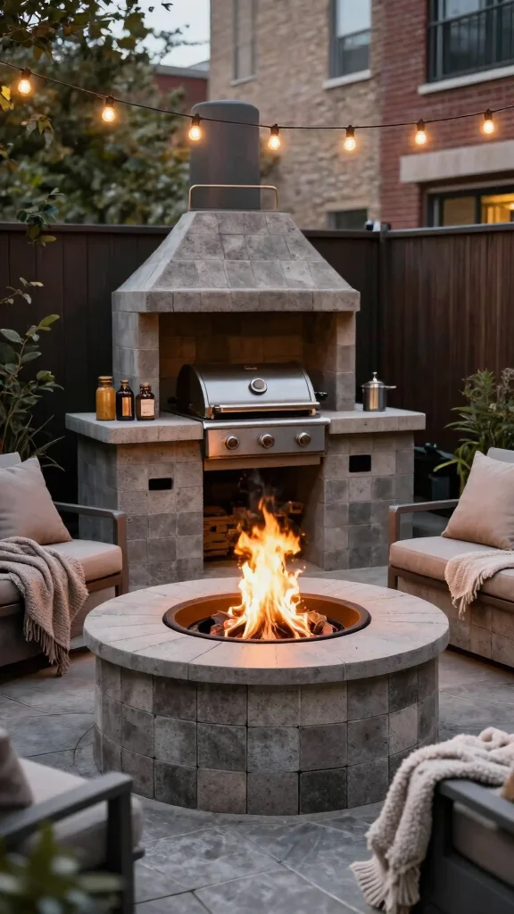 Incorporate a cinder block BBQ table station for convenient grilling and food prep in small urban areas.
