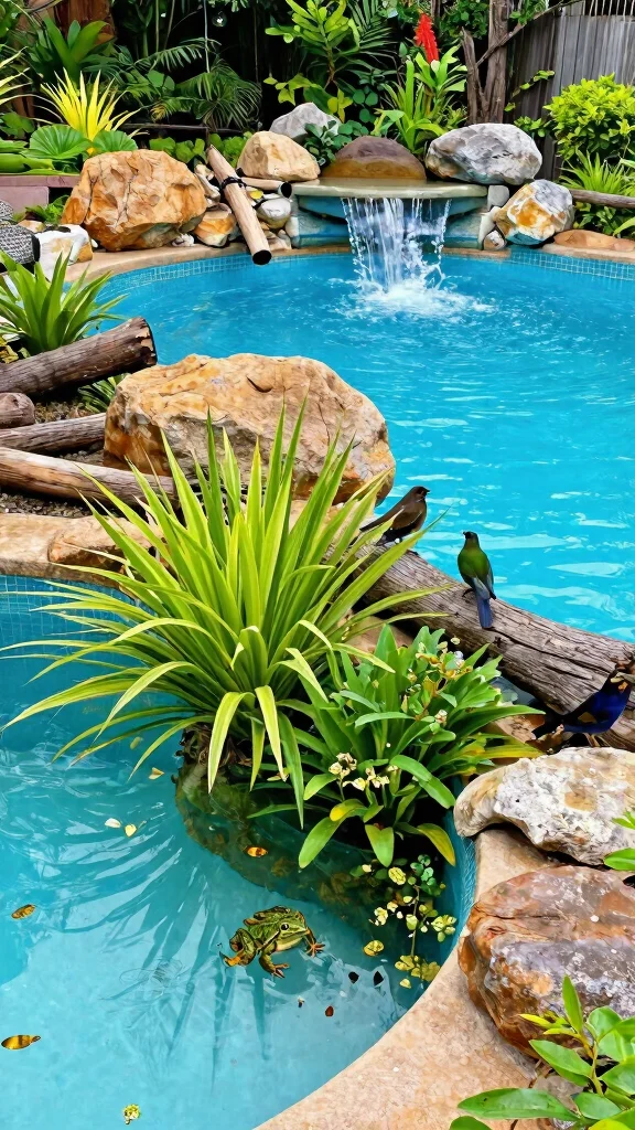 Include features like shallow areas and native plants to attract and support local wildlife around your pool.