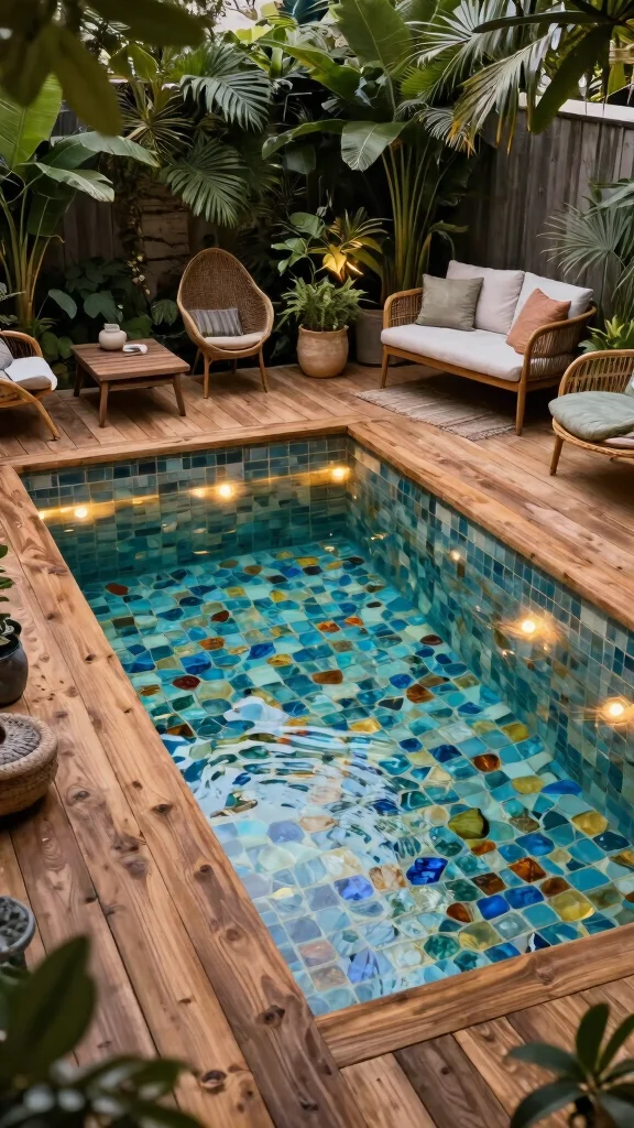 Select eco-friendly materials for pool construction, like recycled glass tiles and natural stone, to minimize environmental impact.