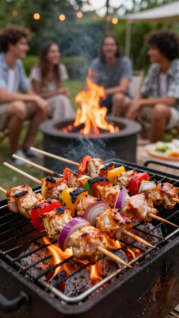 There are plenty of simple, crowd‑pleasing options. Start with classic kebabs and corn on the cob, both great on a grill grate over the fire.