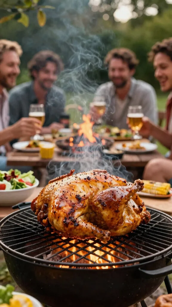 Looking for a fun and flavorful way to grill chicken? Try beer can chicken over the fire pit! This entertaining method guarantees juicy, flavorful meat by placing a seasoned whole chicken upright on an open beer can. The steam from the beer keeps the chicken moist while the outside crisps up beautifully.