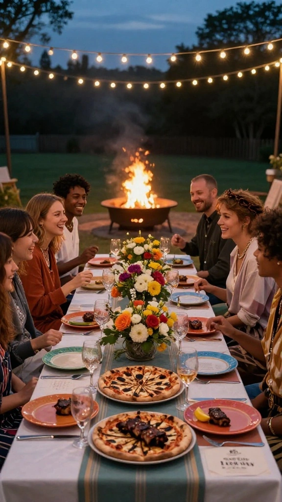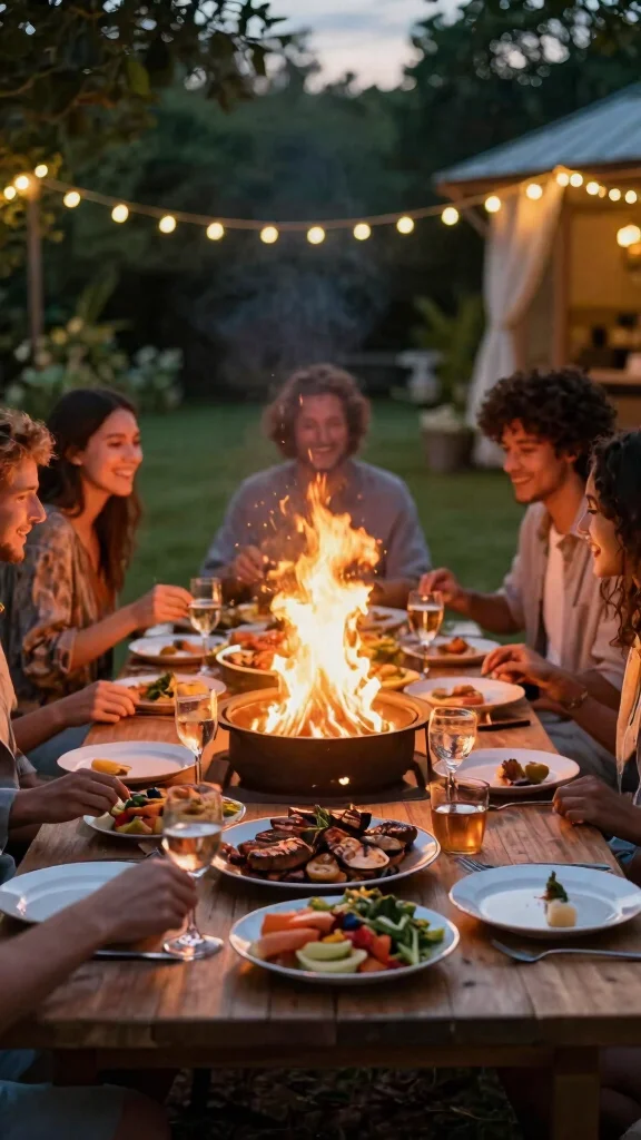 Want to take your backyard entertaining to a whole new level? Host themed dinners cooked over the fire pit! Choose fun themes like Italian night featuring fire-roasted pizzas and grilled veggies, or BBQ night with ribs and corn on the cob. Enhance the experience with creative decorations, music, and even themed attire to make it memorable.
