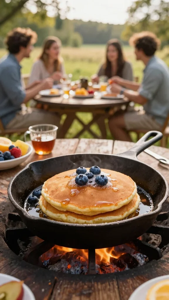 How about a delightful breakfast around the fire pit? Campfire pancakes are a fun and delicious take on your morning routine! Using a cast iron skillet, you can whip up fluffy pancakes while enjoying the great outdoors. Prepare your pancake batter in advance and pour it directly into a greased skillet over the fire. Add fruits or chocolate chips directly into the batter for a fun twist.