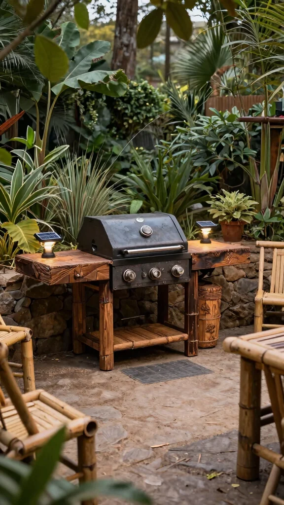 Opt for bamboo furniture that combines sustainability with style, and plant native species around your grill area to support local wildlife. This thoughtful design lets you grill guilt-free, making it a win-win for your backyard!