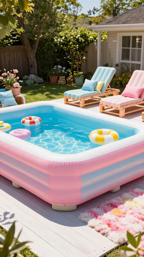 Turn your space into a summer-ready retreat with inflatable pool ideas backyard that won’t break the bank. Start with a simple setup: a shallow inflatable pool, a cheap outdoor rug, and solar-powered lighting to set the mood. For backyard decoration ideas, add a pop of color with inexpensive banners, bamboo screens, and DIY planters. Boost summer backyard activities with water games, floating toys, and easy sprinkler setups. Complete the look with practical inflatable pool accessories like a pump, patch kit, and quick-dry towels to keep maintenance affordable backyard upgrades.