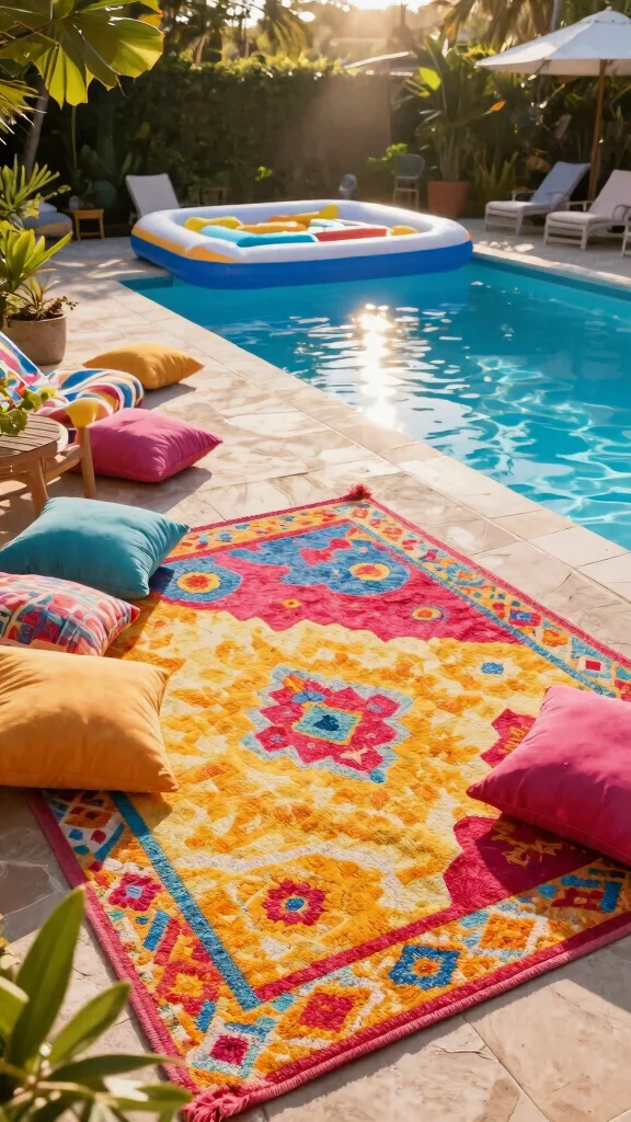 Enhance your inflatable pool setup with stylish water-resistant outdoor rugs. These rugs not only provide a soft surface for lounging but also add color and texture to your backyard. Look for rugs that are easy to clean and can handle the elements.