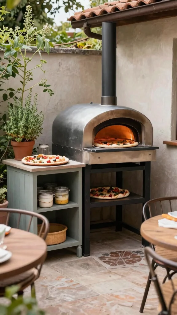 Surround the area with aromatic herbs like oregano and basil, ensuring fresh toppings are always at hand for your culinary creations.