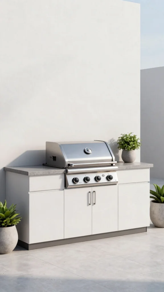 If simplicity speaks to you, a minimalist outdoor kitchen could be the way to go. Incorporate a small stainless steel grill and a basic countertop for food prep, focusing on a clean design that promotes a calm cooking atmosphere.