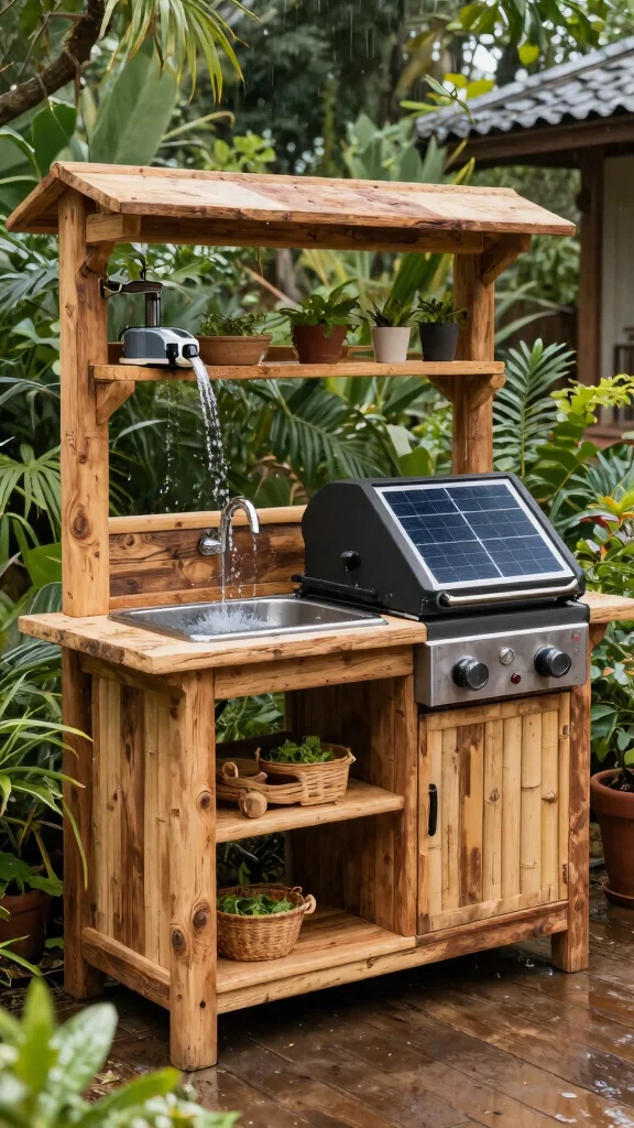 ❝ Did you know a solar-powered grill can cut energy use by up to 80% compared to gas grills? Pair it with bamboo or reclaimed wood, and your mini outdoor kitchen becomes a stylish, sustainable retreat. ❞