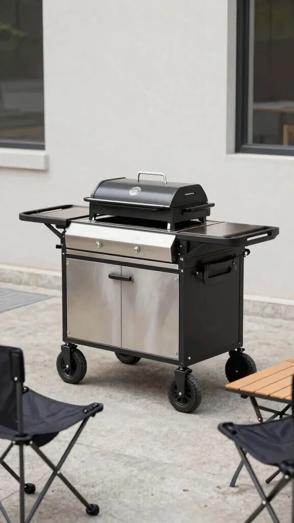 Including foldable chairs and a table allows for quick setup anywhere in your yard, making it perfect for spontaneous cooking adventures.
