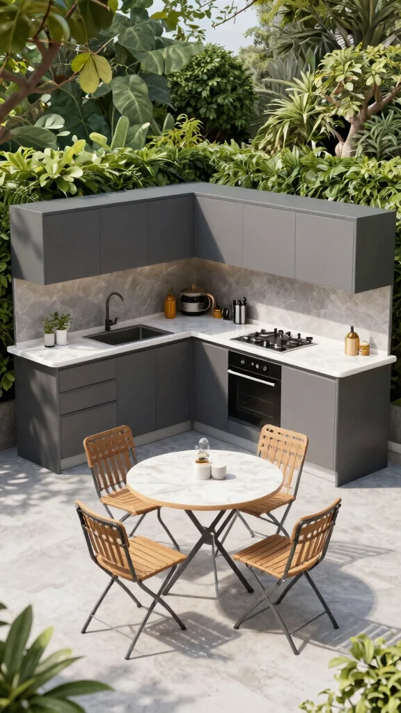 Fun fact: In compact modern outdoor kitchen setups, an L-shaped layout can boost workflow efficiency by up to 30%, keeping everything within arm’s reach. Pair a bar-height counter for dining and foldable elements to swap between socializing and cooking in seconds.