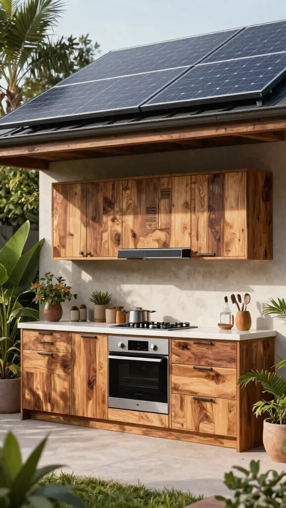 Energy-efficient appliances keep power consumption low, while solar panels can harness renewable energy for outdoor lights or appliances. Sourcing local plants for your kitchen garden reduces your carbon footprint while enhancing aesthetics.