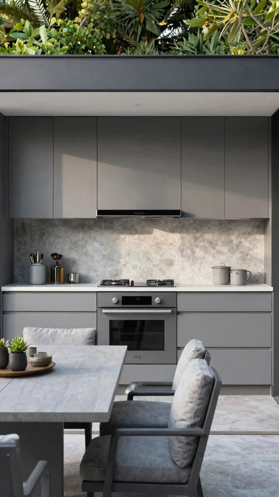Looking to create a serene outdoor cooking space? A monochromatic color palette can do just that, offering a cohesive and sophisticated design. By using varying shades of a single color, like deep grays or crisp whites, your kitchen will seamlessly blend with your garden.