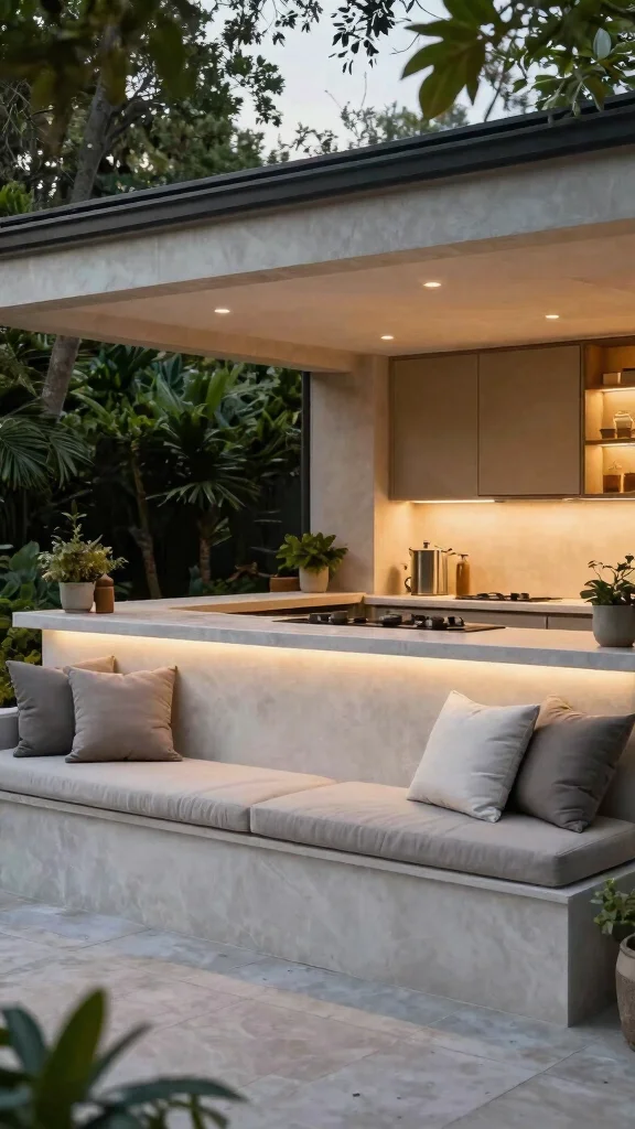 Looking for a stylish yet functional outdoor kitchen? Integrated seating solutions can help you achieve just that. Consider building a low wall or modular seating that doubles as a bar for dining—perfect for casual gatherings.