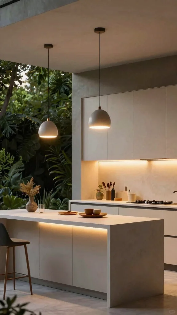 These lighting elements not only provide illumination but also add an appealing aesthetic. Opt for fixtures that reflect your kitchen’s clean lines, like geometric shapes or minimalist designs.