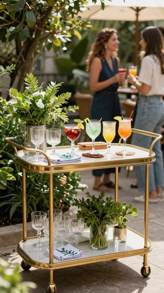 A chic bar cart is a must-have for any outdoor gathering. This mobile setup allows you to easily move drinks and snacks wherever the fun takes you. Opt for a cart with wheels for effortless maneuverability, ensuring that your guests can always grab their favorite refreshment.