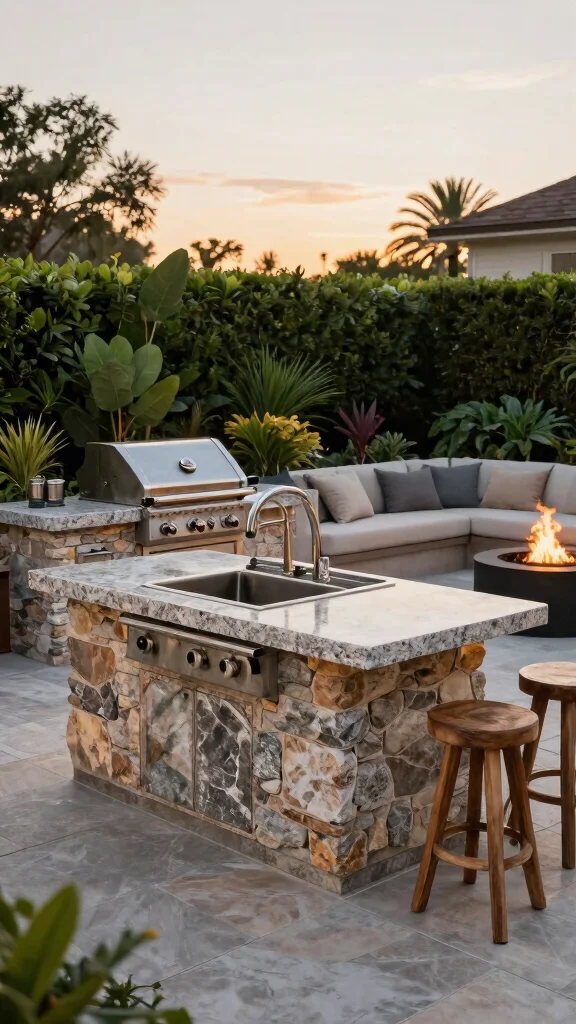– Best for: Homeowners looking for a luxurious, timeless outdoor kitchen aesthetic.