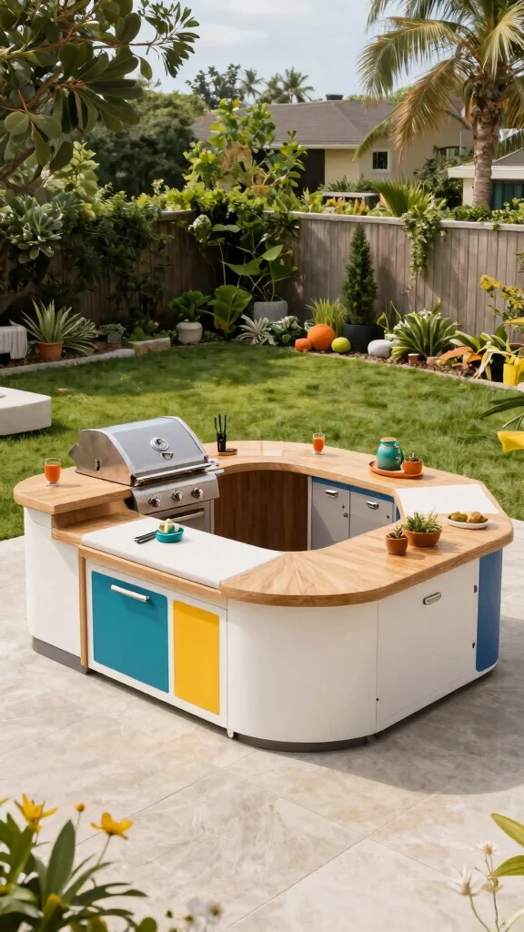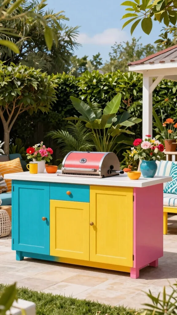 Ready to inject some fun into your outdoor cooking space? A colorful grill island can create a vibrant atmosphere that enhances your backyard gatherings. Think about using bright cabinetry or décor in shades like blue, yellow, or red to express your personal style. Pair these lively colors with neutral countertops for a balanced look that feels polished and inviting.